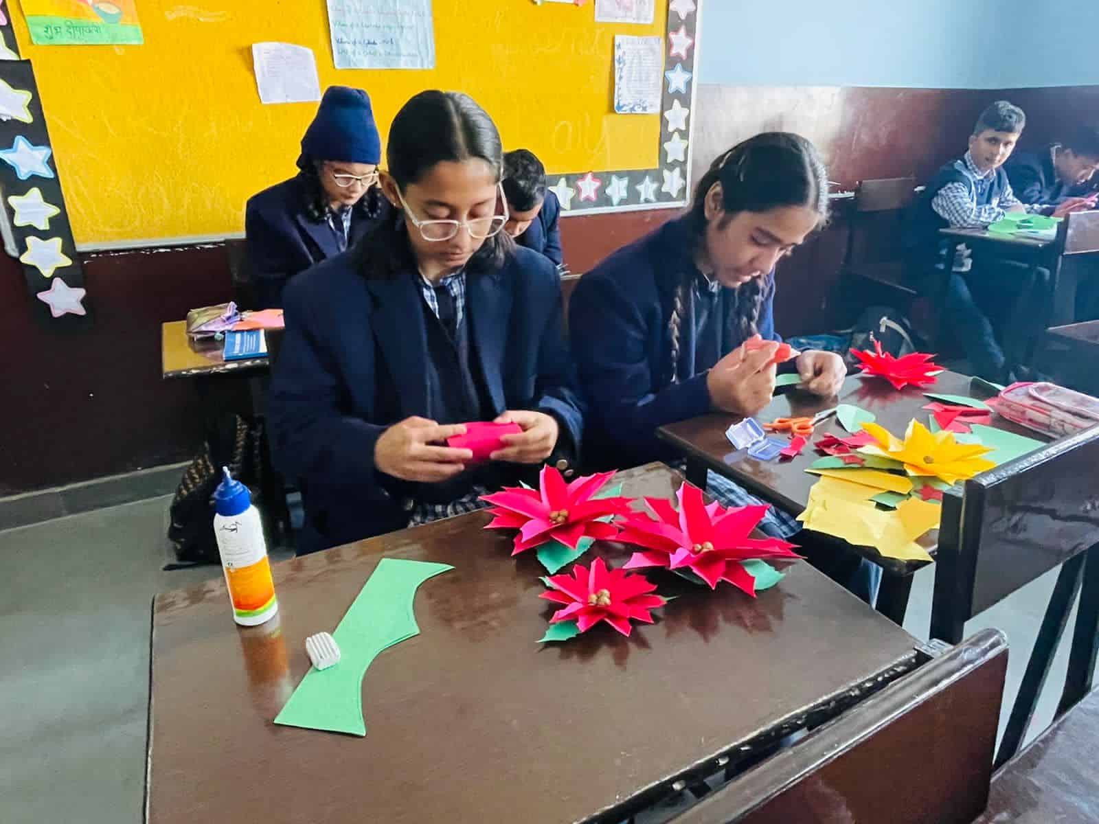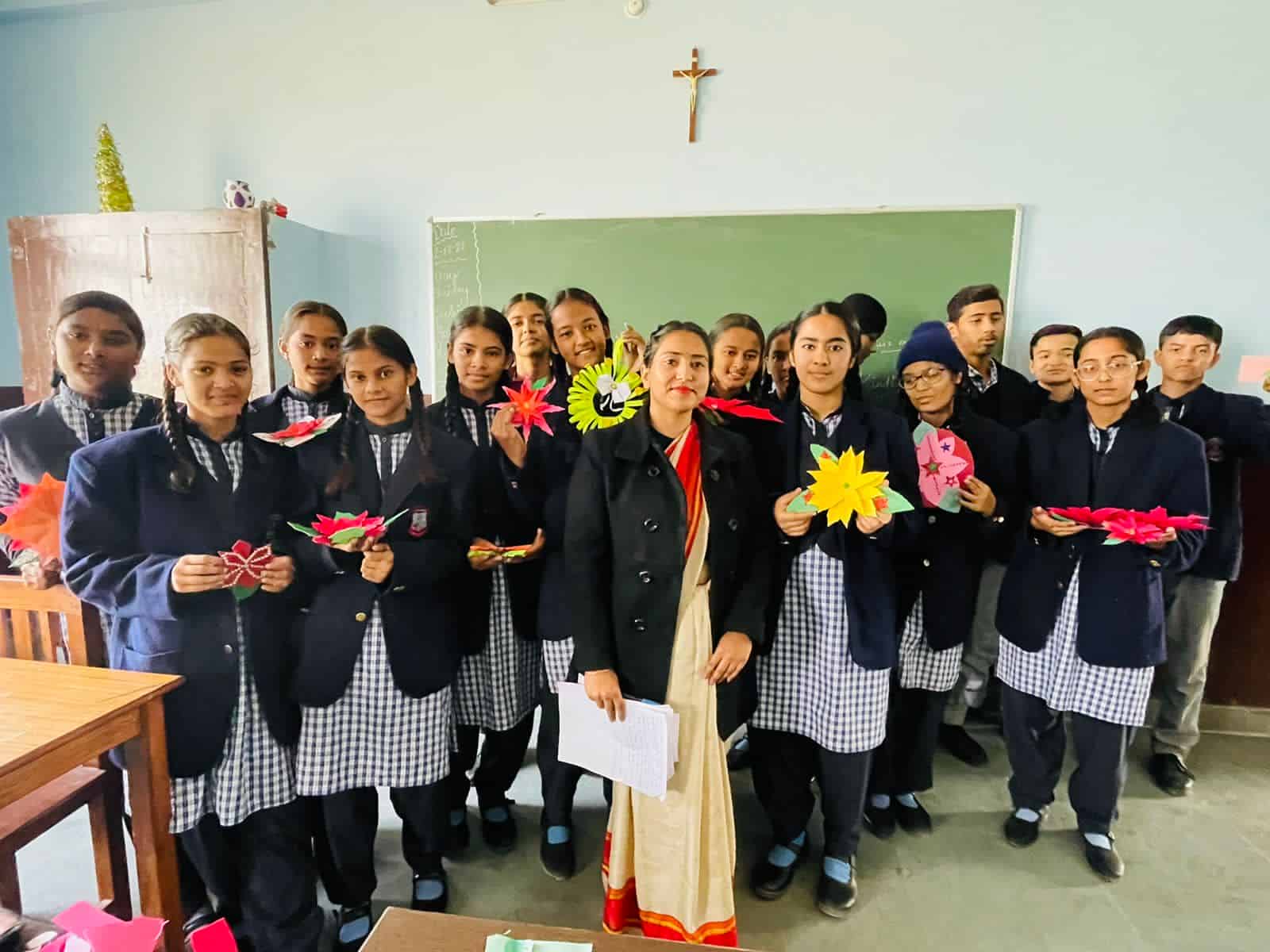 Activity-(Class-VI - 3D Star making ||Class -VII - 3D Angels making || Class-VIII - 3D Santa making || Class -IX - X'mas Flowers making) by St-Xavier School-Khatima students